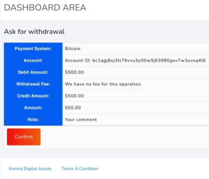 3. On the dashboard area ,confirm your withdrawal carefuly